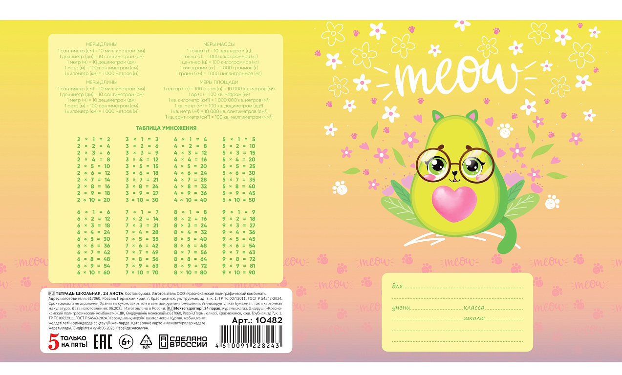 Тетрадь 18 листов в клетку "ЖЕЛТАЯ" обложка из мелованного картона(200 г/м²) блок офсет 60 г/м², 92%ТМ: 5 только на пять