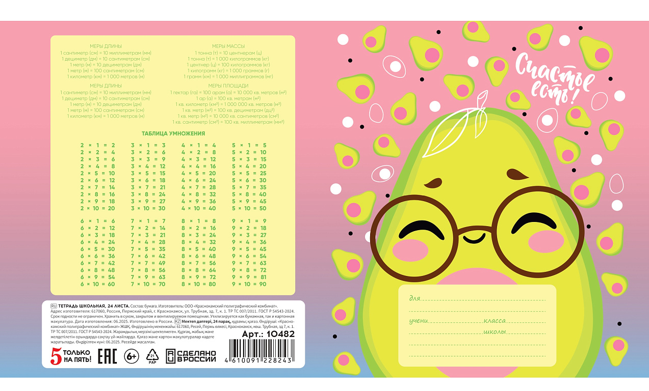 Тетрадь 18 листов в линию "ЗЕЛЁНАЯ" обложка из мелованного картона(200 г/м²) блок офсет 60 г/м², 92%ТМ: 5 только на пять
