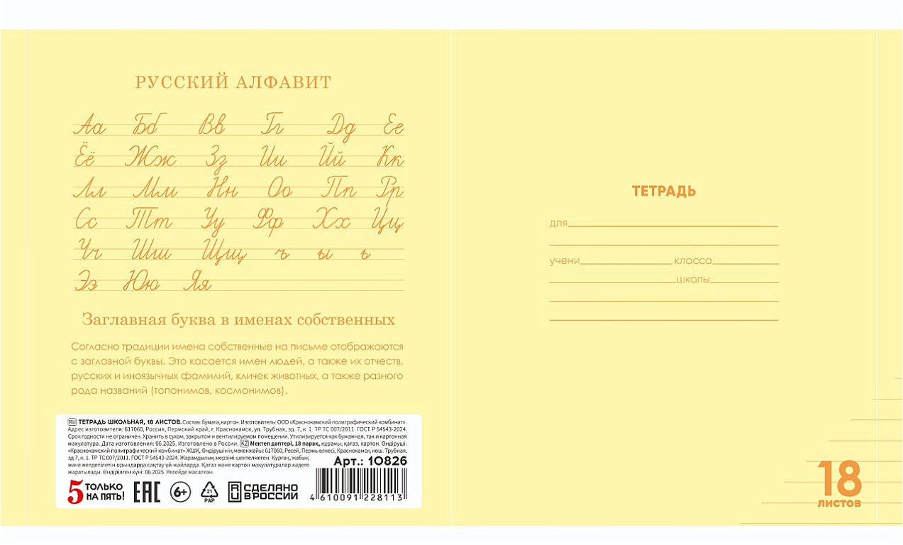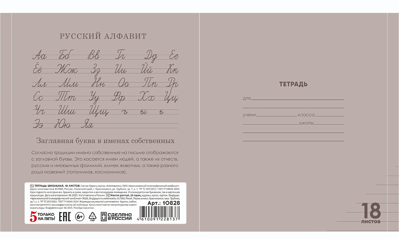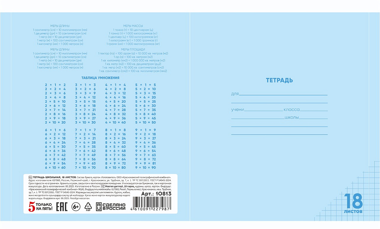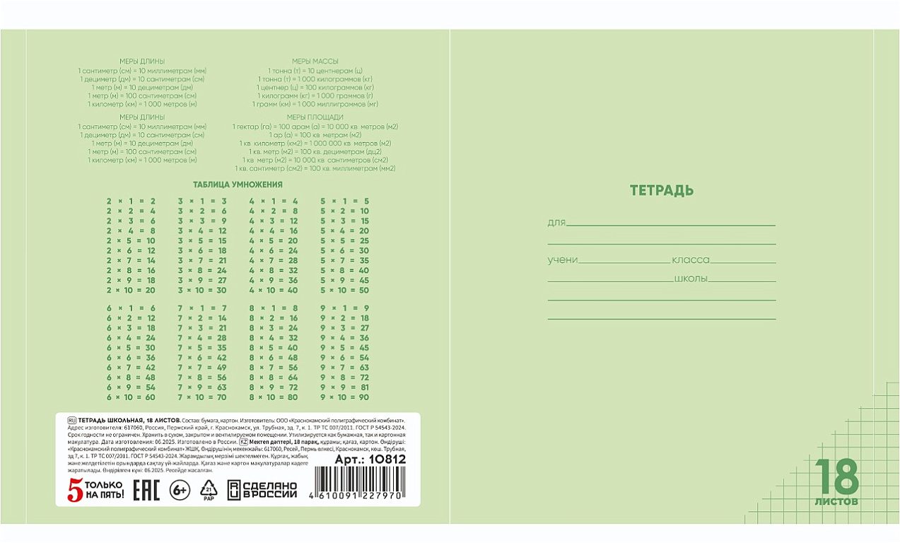 Тетрадь 18 листов в клетку "ЧЕРНАЯ" обложка из мелованного картона(200 г/м²) блок офсет 60 г/м², 92%ТМ: 5 только на пять