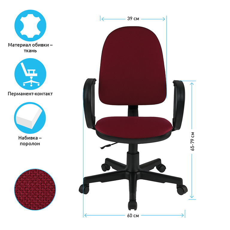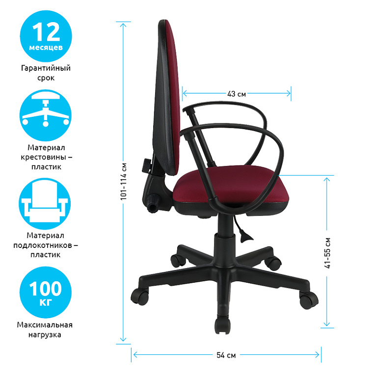 Кресло Cactus CS-WMC333-RD темно-красный сиденье темно-красный сетка/ткань низк.спин. крестов. пластТМ: Cactus