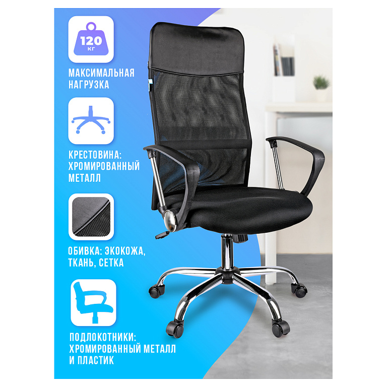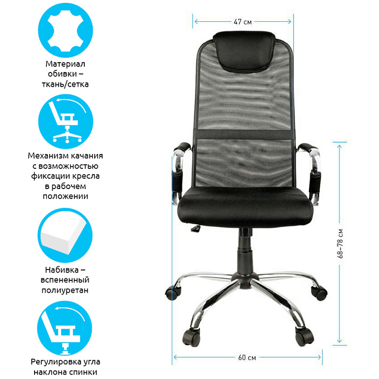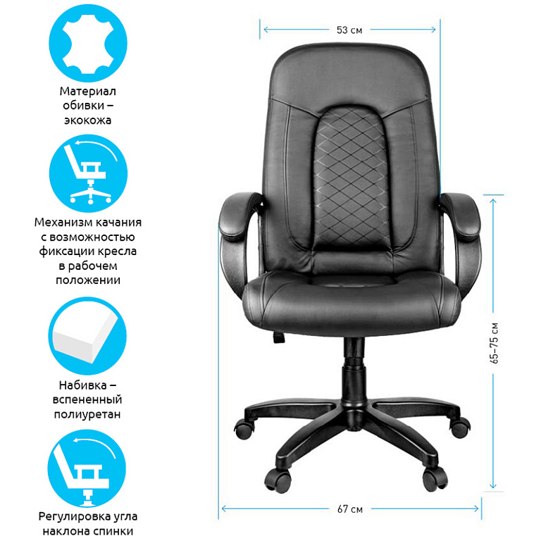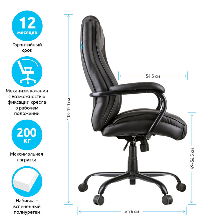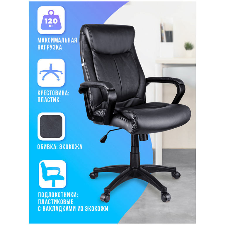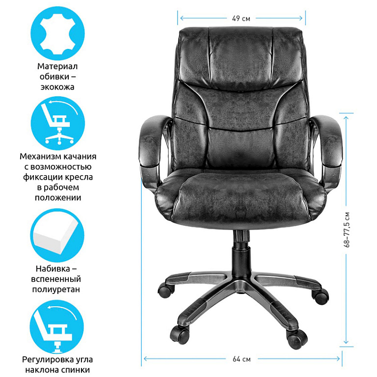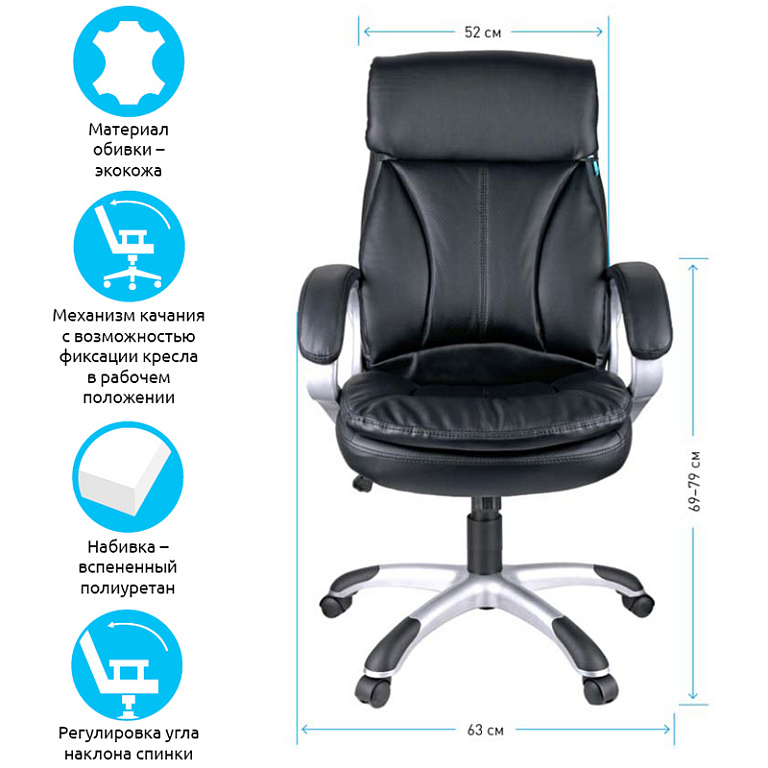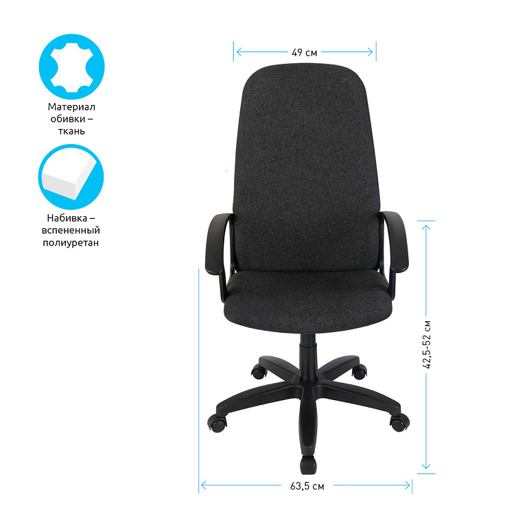 Кресло руководителя Helmi HL-E30 "Ergo" LT, регулируемые подголовник и поясничный упор, ткань чернаяТМ: Helmi