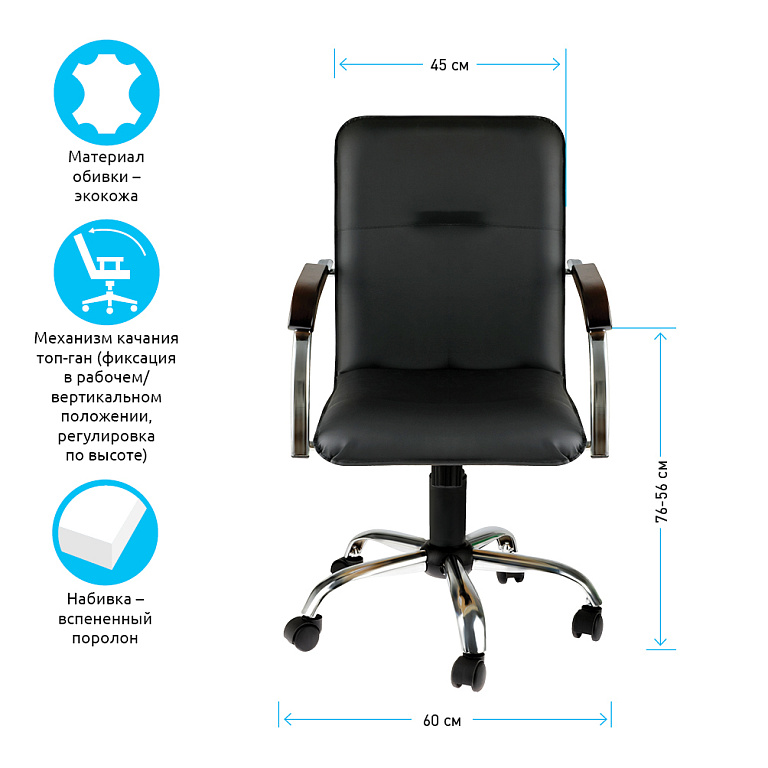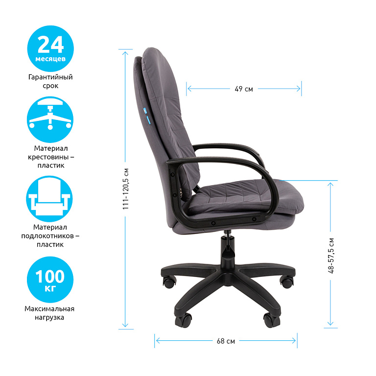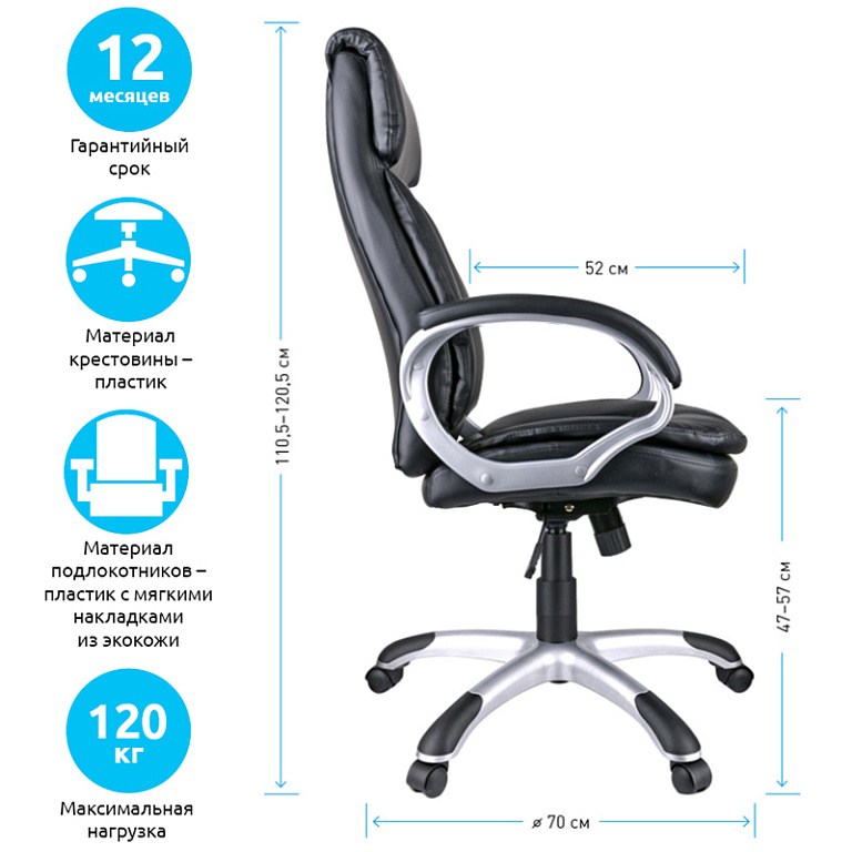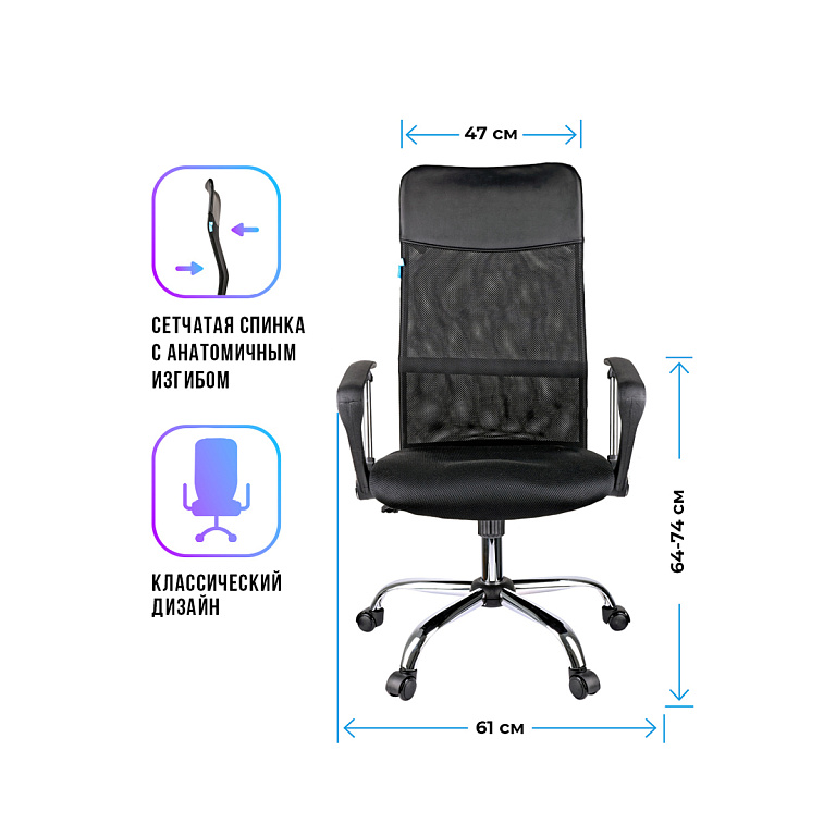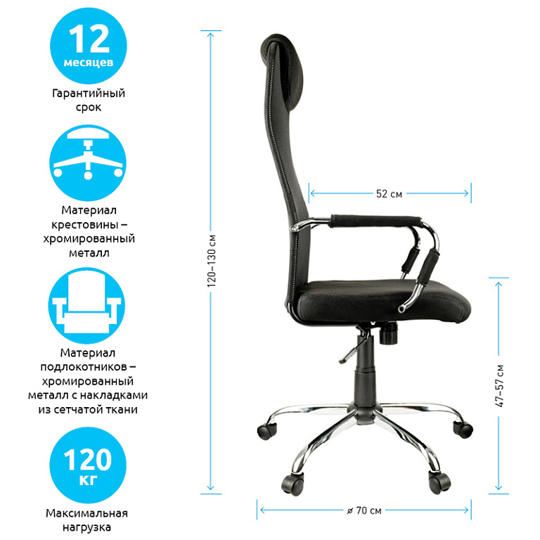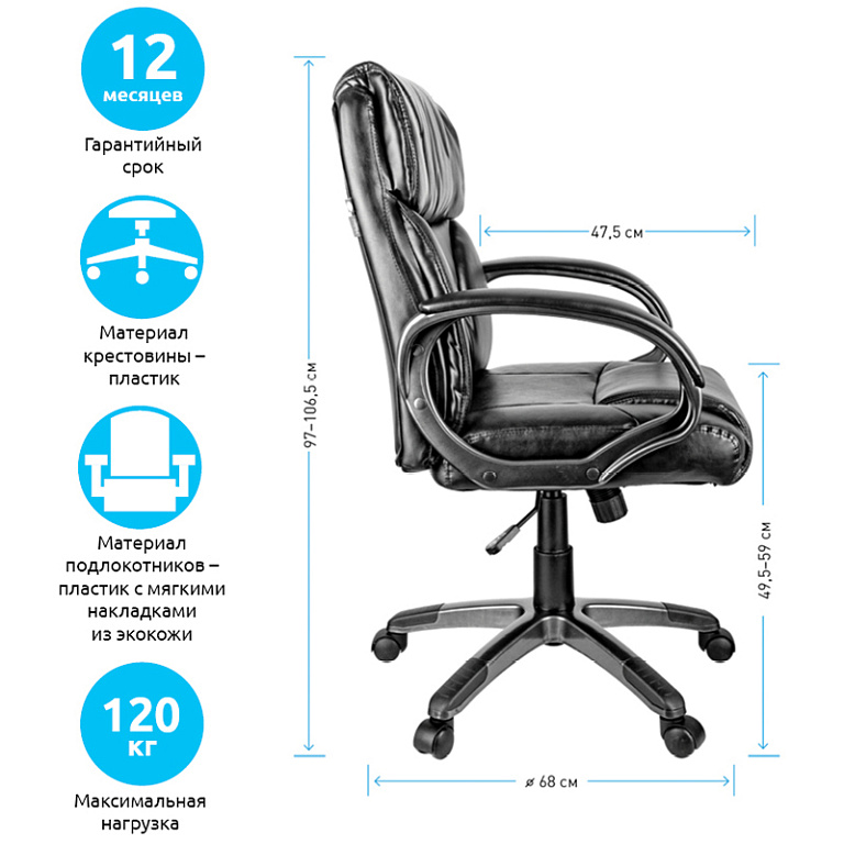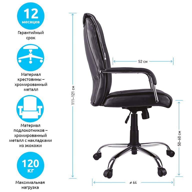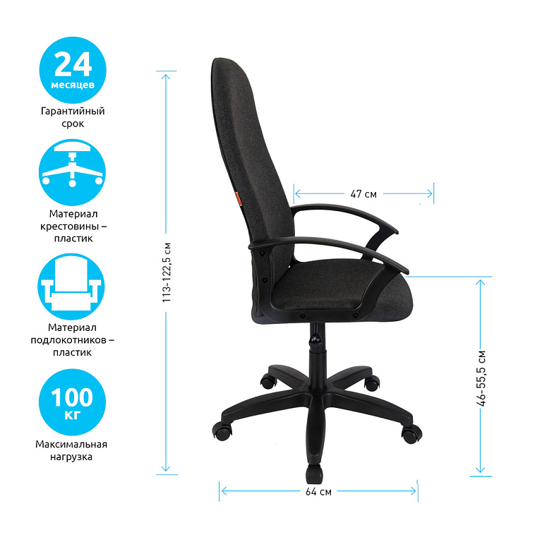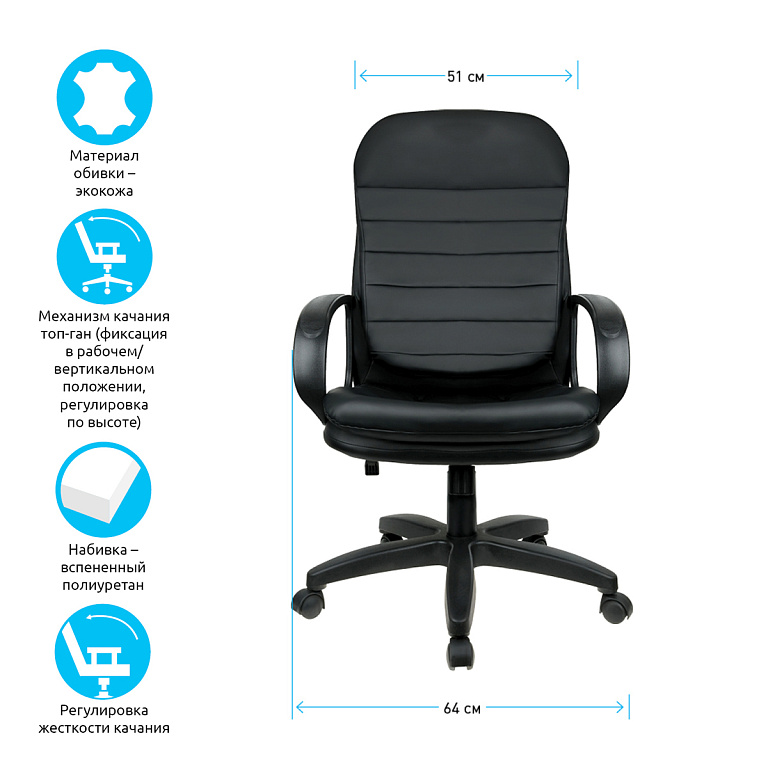 Кресло руководителя Helmi HL-E30 "Ergo" LT, регулируемые подголовник и поясничный упор, ткань чернаяТМ: Helmi