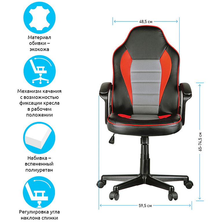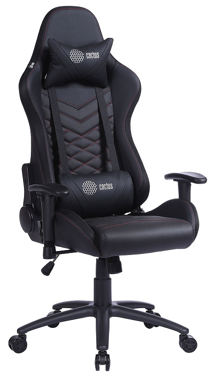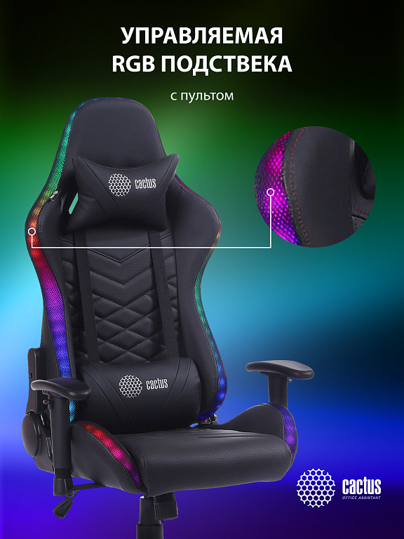 Кресло игровое Cactus CS-CHR-0099BLR с RGB-подсветкой черный/красный эко.кожа с подголов. крестов. сТМ: Cactus