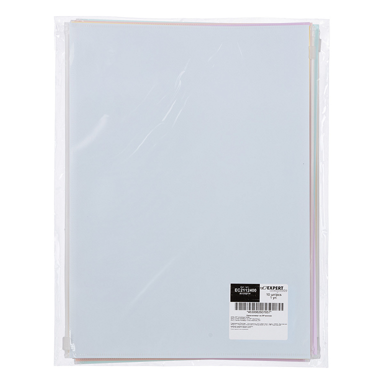 Папка на молнии А4 Zip-пакет ErichKrause Fizzy Clear c цветной молнией, прозрачный, пластик.,ассортиТМ: Erich Krause