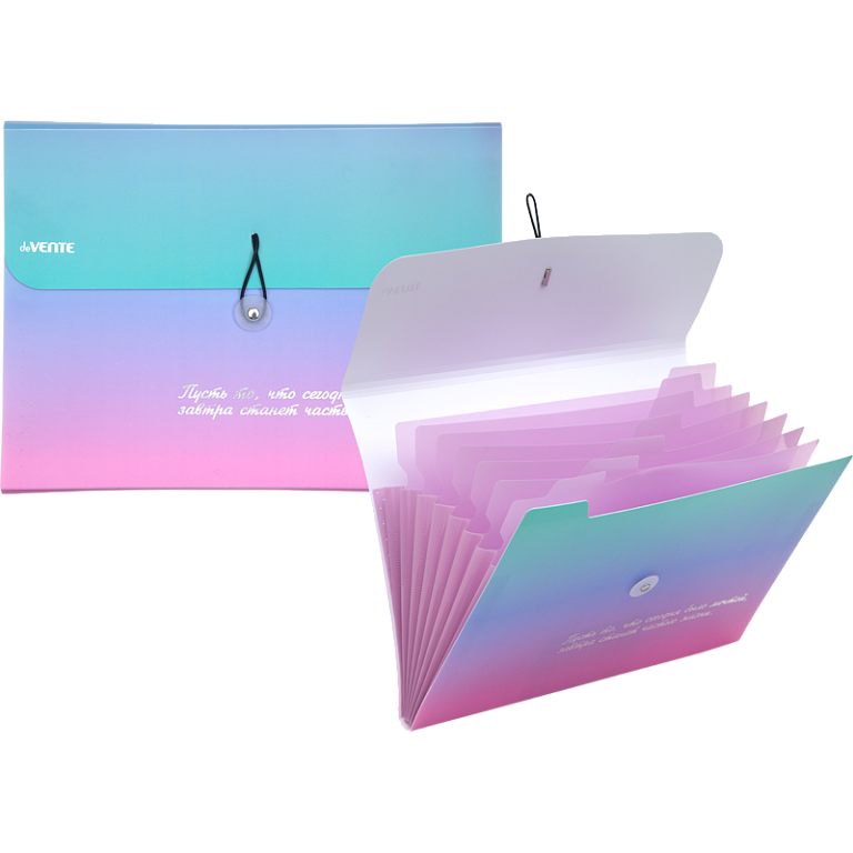 Папка с резинкой с 8-ю отд. "deVENTE. sigNATURE" A4 (330x260x10 мм) полипропилен 600 мкм, пудрово розовая, фактура "ткань" черные разделители 160 мкм, индивидуальная упаковка, пудрово розовая