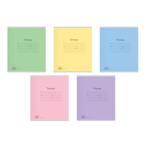 Тетрадь 12 листов в крупную клетку "Пастель" - Салатовая 60-65г/кв.м на скобе Обл. мел.картон скругл.углы